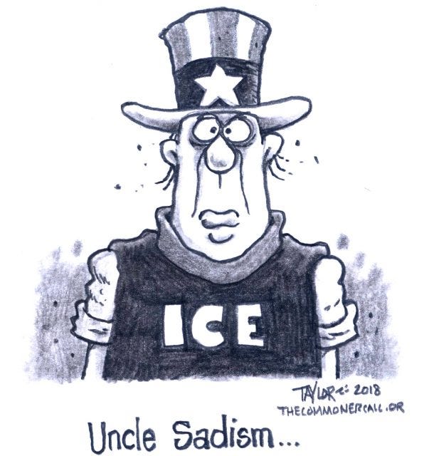 At the same time all this is happening, government ICE Gestapo goons are illegally funneling immigrants and US citizens into a network of detention facilities and concentration camps like the perversely named Alligator Alcatraz in the Florida Everglades. Families are separated and disappeared, children are separated from parents, feeding — no doubt as the recent surge in Jeffrey Epstein stories remind — the international trafficking of children.