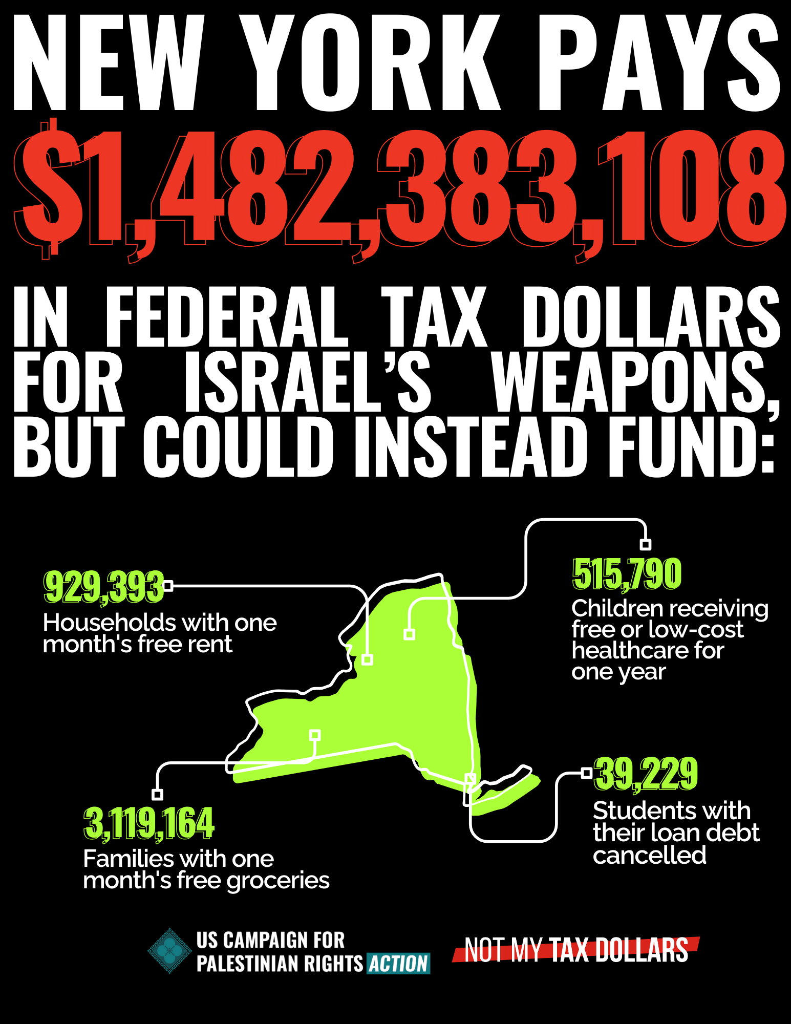 The interactive Not My Tax Dollars website can show you how our tax money stolen for Israel could be used in your state and community. They break it down into such day-to-day real world challenges like the cost of rent, groceries, student loan cancellation and healthcare. You know, the basics families need to survive that are sacrificed for Israel’s genocide of the Palestinian people.